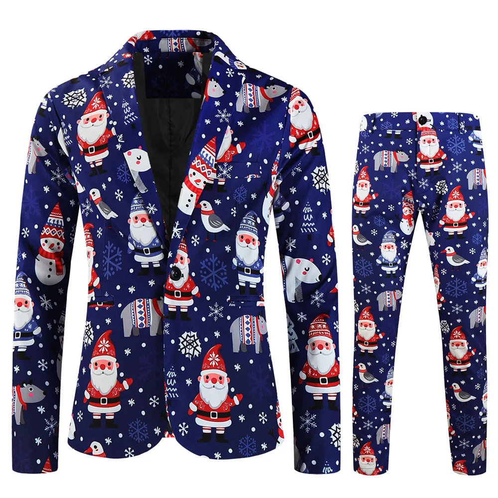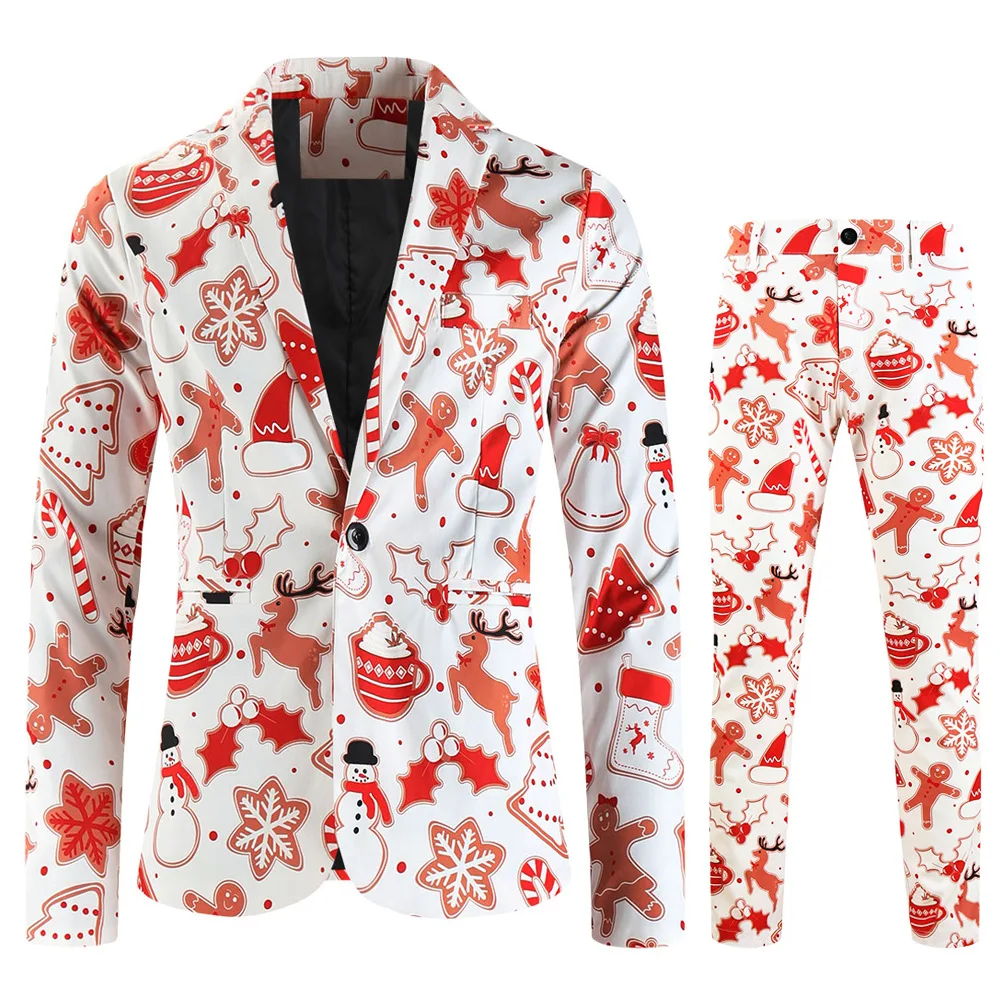 Fashion 3D Printed Men 2 Piece Sets Blazer and Pants Christmas Party Nightclub Hip Hop Singer Stage Costumes Valentine Day Sets